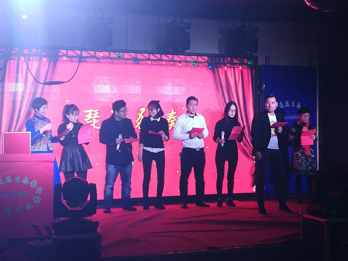 5.財務室和辦公室,還有電腦古玩城共同為大家演唱一曲《相親相愛一家人》